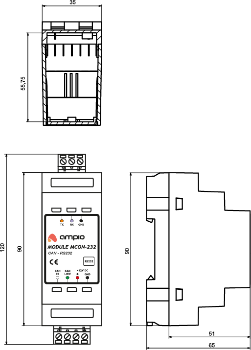 Moduł M-CON-232-s jest składnikiem systemu Ampio Smart Home i służy do konwersji transmisji z urządzeń ze złączem RS232 na standard CAN-Bus.