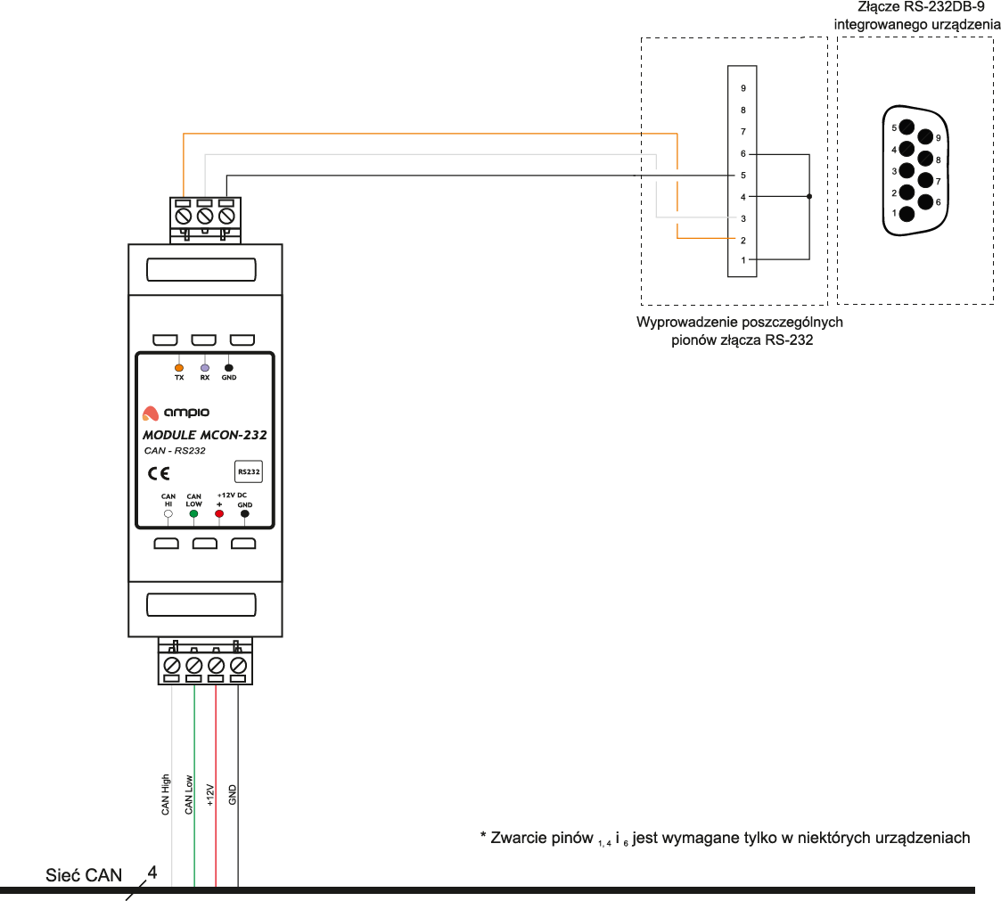 - M-CON-232-s konwerter RS-232 na CAN (np. podłączenie modułu INT-RS Satel)